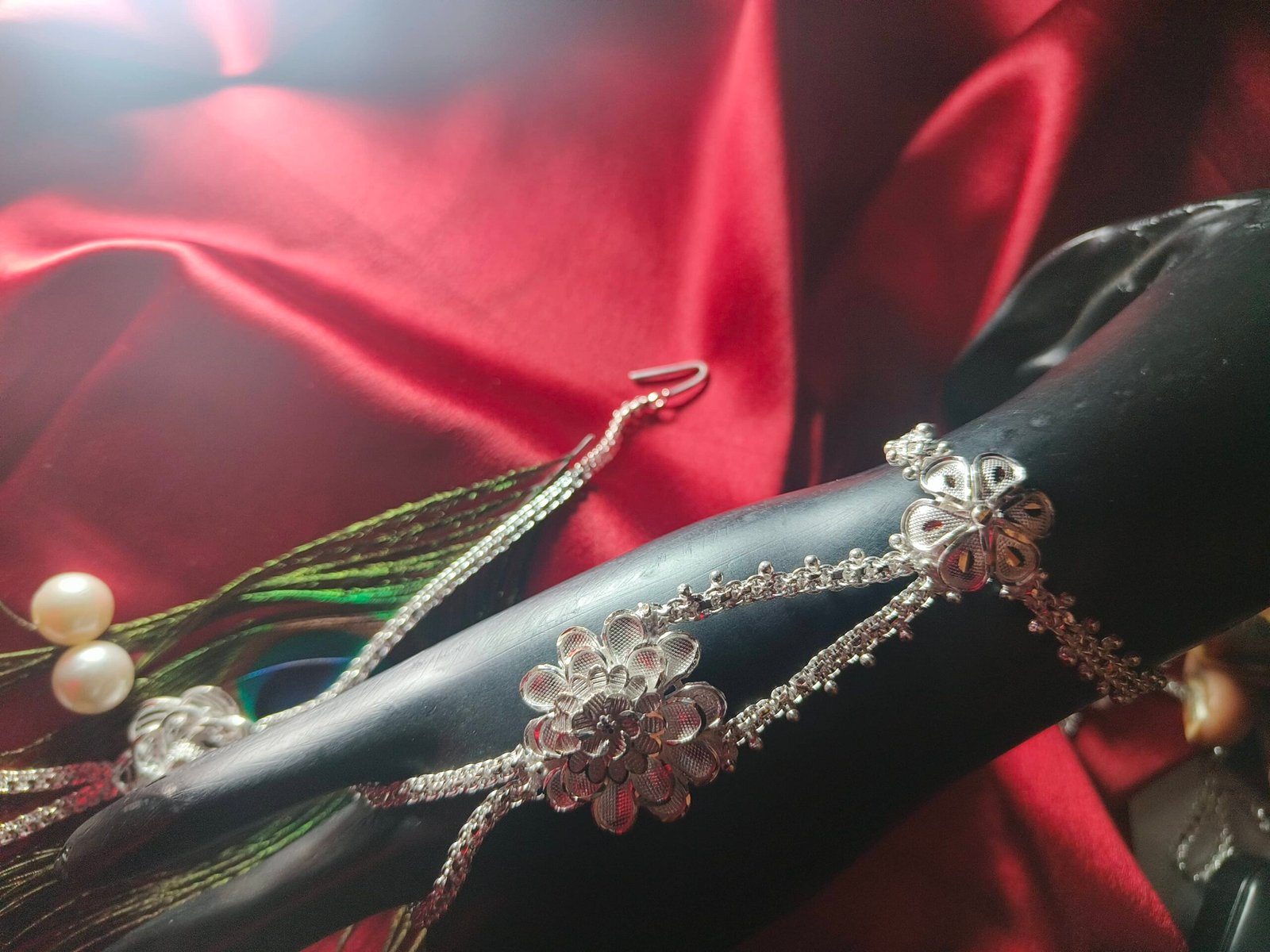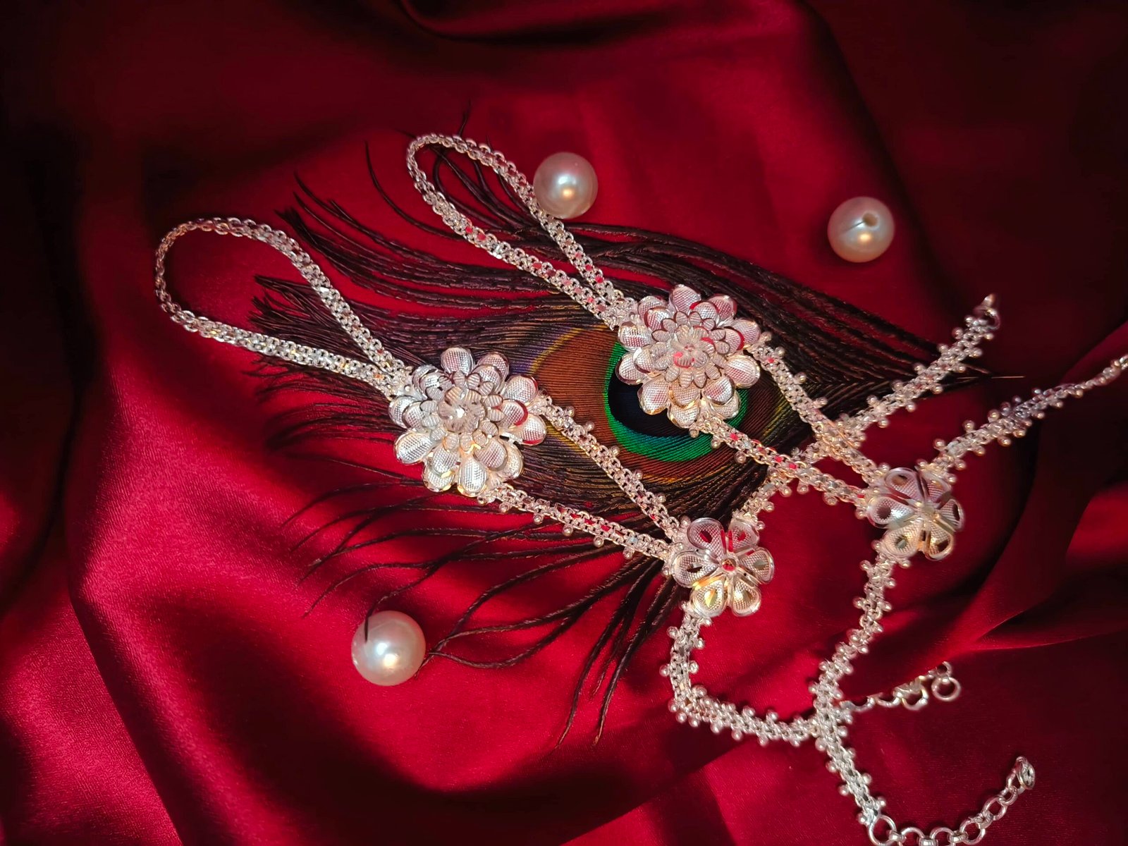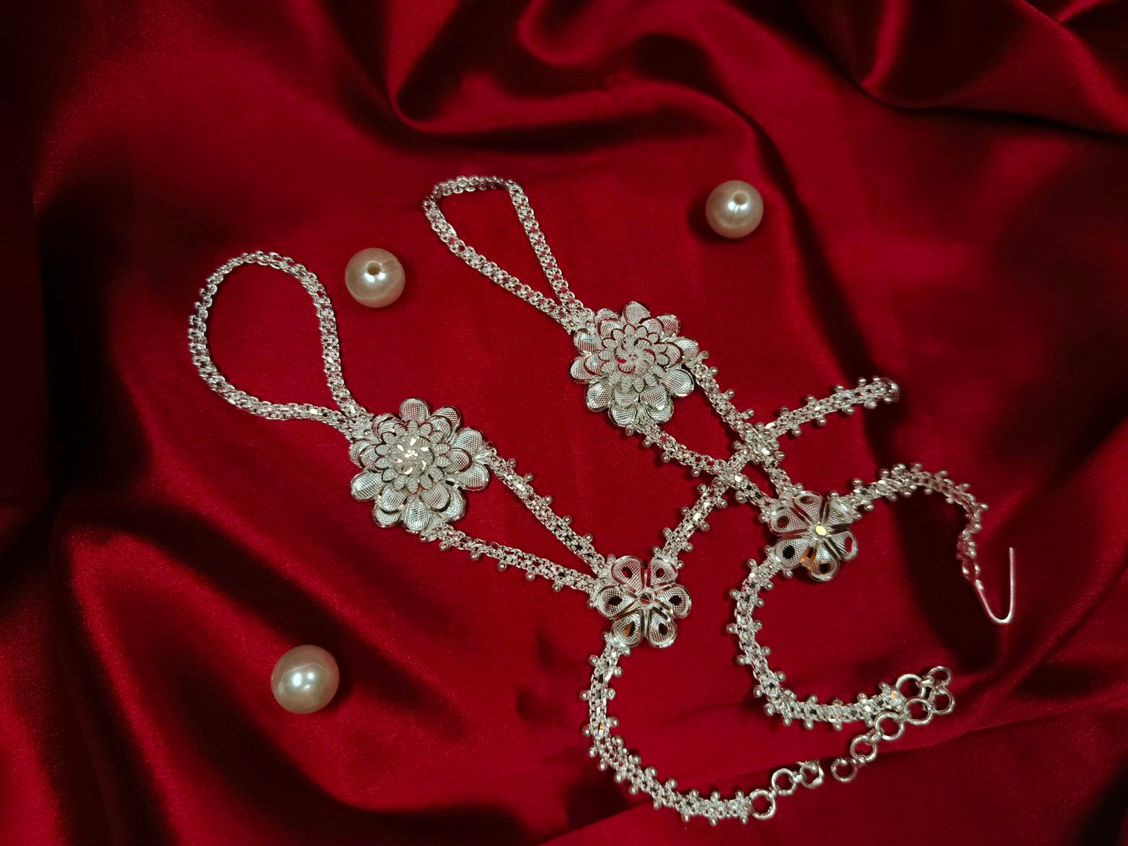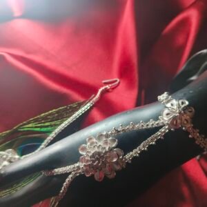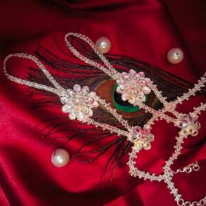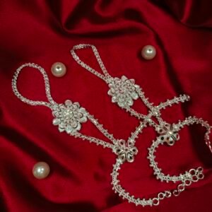 Our Ratanchur is a stunning blend of tradition and elegance, crafted to adorn your hands with royal charm. Designed with delicate chains connecting the finger rings to the bracelet, it beautifully highlights every movement of your hand.