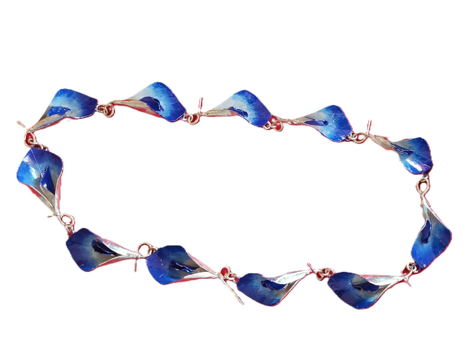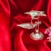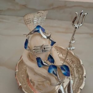 The Silver Aparajita Garland—also known by its regional names Nilkanth or Gokarna—is a luminous offering of devotion, crafted in homage to a flower steeped in spiritual significance. The Aparajita bloom, with its gentle blue hue and delicate form, symbolizes purity, resilience, and divine grace. When immortalized in pure silver, its blossoms form a garland of unwithering beauty, ideal for adorning deities like Lord Shiva, Vishnu, or goddesses associated with wisdom and devotion. This silver mala merges botanical symbolism with eternal artistry, making it a cherished addition to any altar or ceremonial tribute.