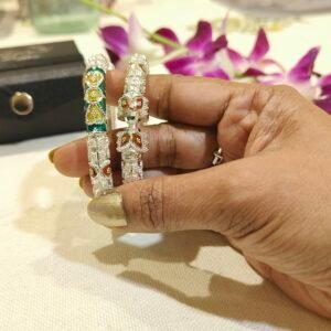 The bangles are finely handcrafted. Meenakari with dark green, maroon and dark yellow.