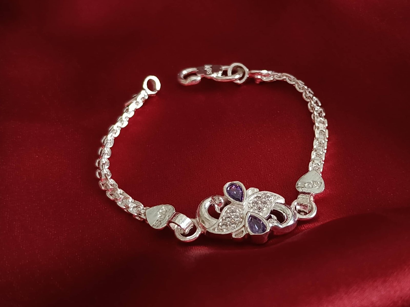 Gorgeous Chikoo bracelet is very unique and trendy. Stonework in center piece, each side has chain and S lock for 5yrs old.