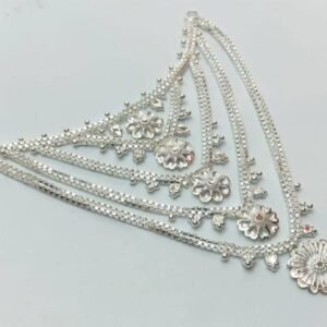 Made from high-quality silver, this necklace features five delicate layers of intricate design, symbolizing purity and devotion. Ideal for adorning idols during festivals, poojas, or daily rituals, it enhances the divine aura and makes your spiritual space more beautiful.