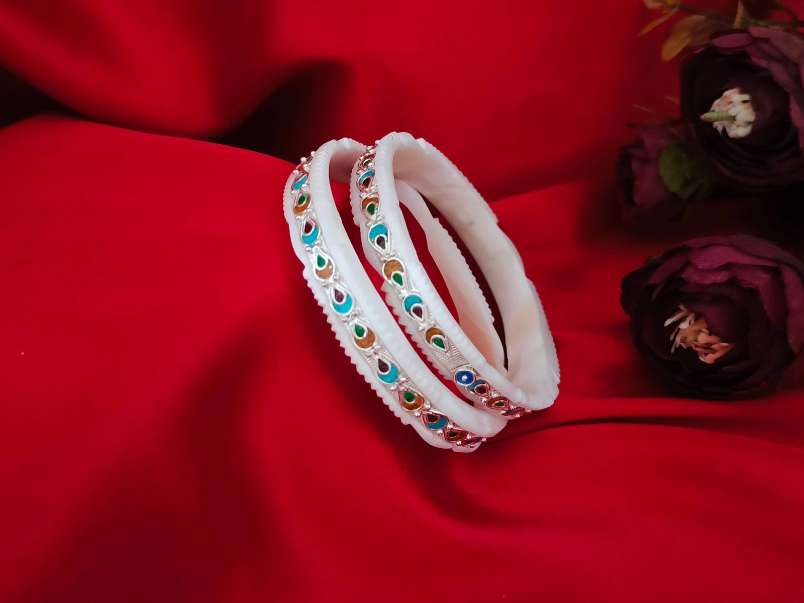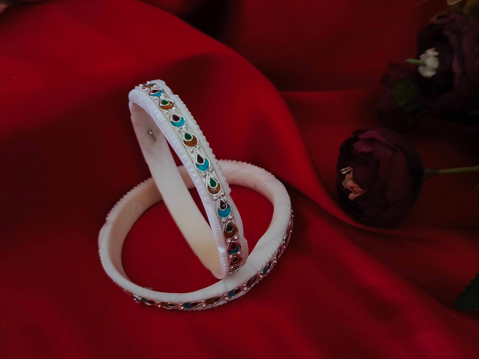 Discover the allure of our Sakha Bangle. This unique piece combines the boldness of Sakha with the elegance of intricate silver meenakari designs.