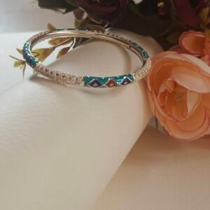 Add a royal touch to your ethnic look with our Meena Manipuri Bangle, a true masterpiece of traditional craftsmanship. Each piece is hand-painted with detailed Meenakari work, reflecting vibrant colors and intricate motifs that have been part of Indian heritage for centuries. Whether paired with a saree, lehenga, or an Indo-western outfit, this bangle is sure to make you stand out with grace and elegance. Perfect for festive wear, weddings, or as a collector’s piece for lovers of traditional jewelry.