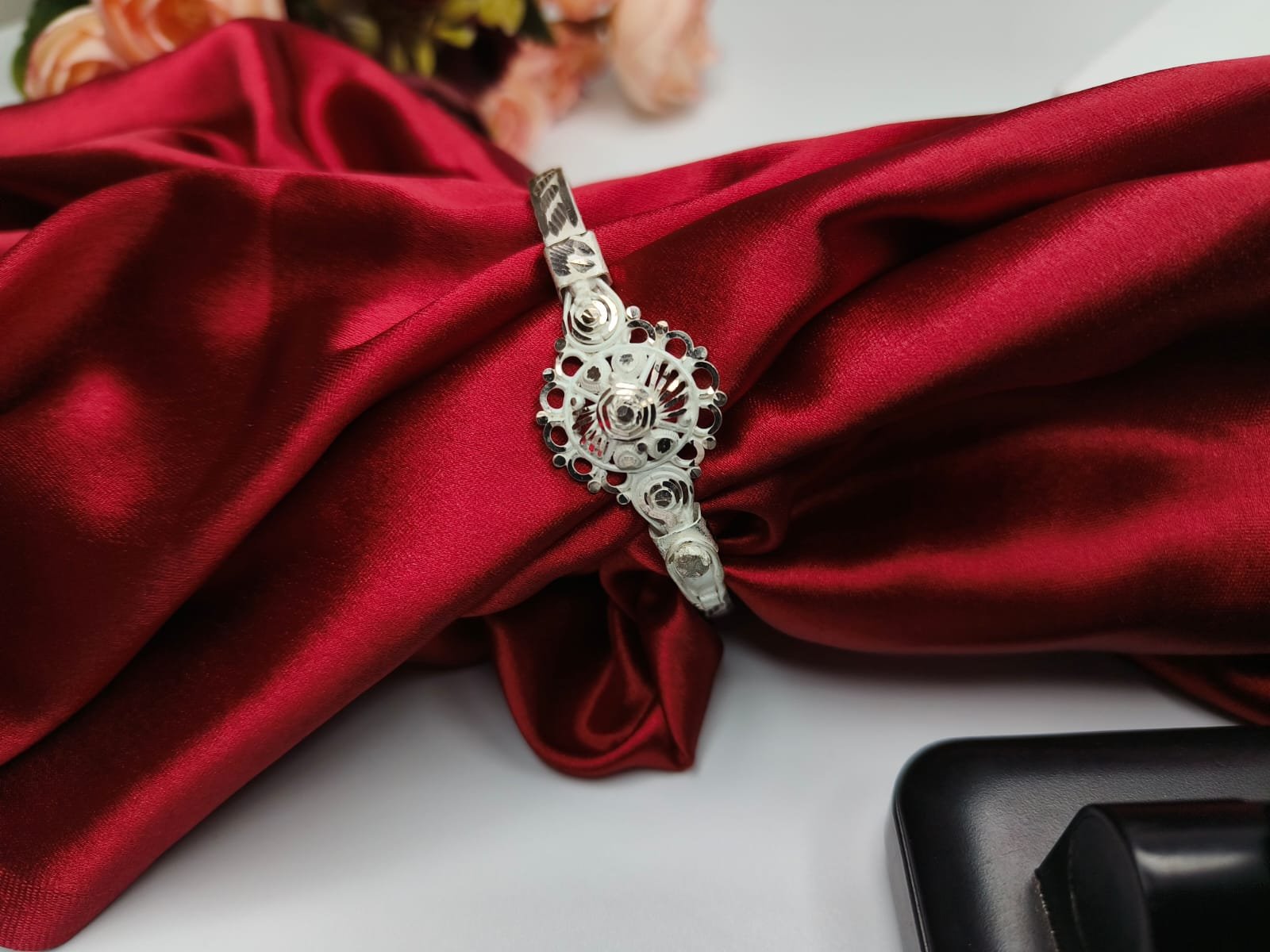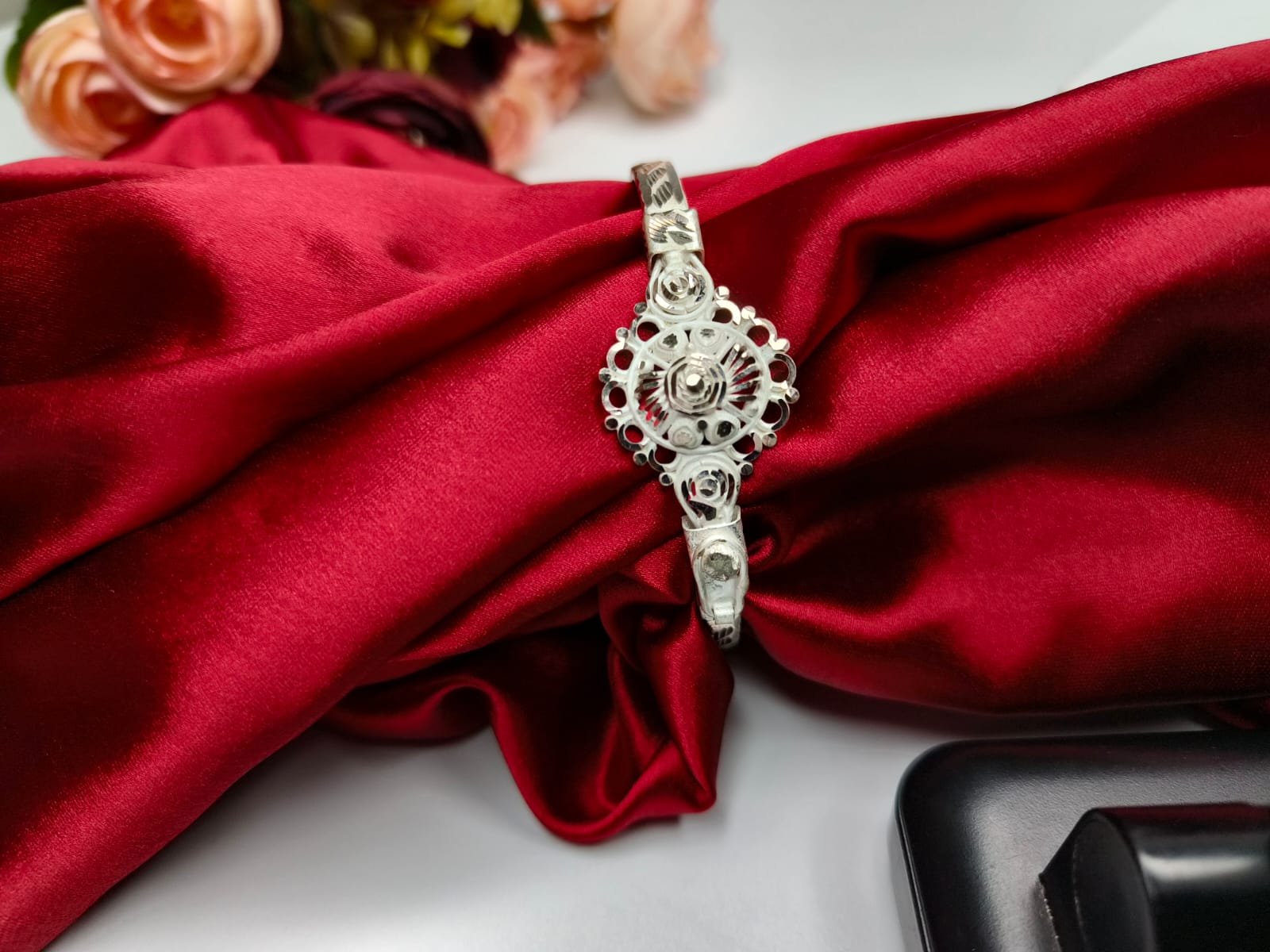 These bangles are a traditional ornament that radiates grace. Its graceful designs compliment almost every ethnic outfit. The inner side of the bangle is delicately cut and polished so as to fit your hand comfortably. There is an iron bangle on the inside to make it more comfortable for the wearer.