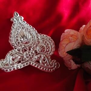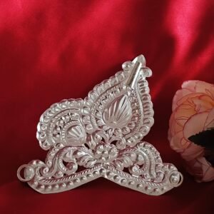 The Kolka Mukut is a beautifully crafted crown designed to adorn your Devi or Devta idol, enhancing its divine presence. Inspired by traditional Bengali artistry, the kolka motifs symbolize purity, protection, and auspiciousness. Made with intricate detailing, this Mukut adds a royal and spiritual charm to your idol, making it perfect for Durga Puja, Kali Puja, or daily worship. A graceful blend of devotion and heritage.