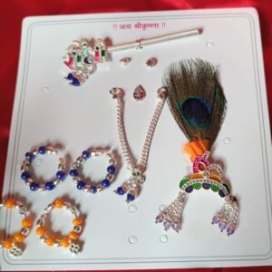 - Set of Idol Jewellery including Meena Mukut with Peacock Feather, Necklace, Anklet, Bangle, Earring, Bindi and meena flute.