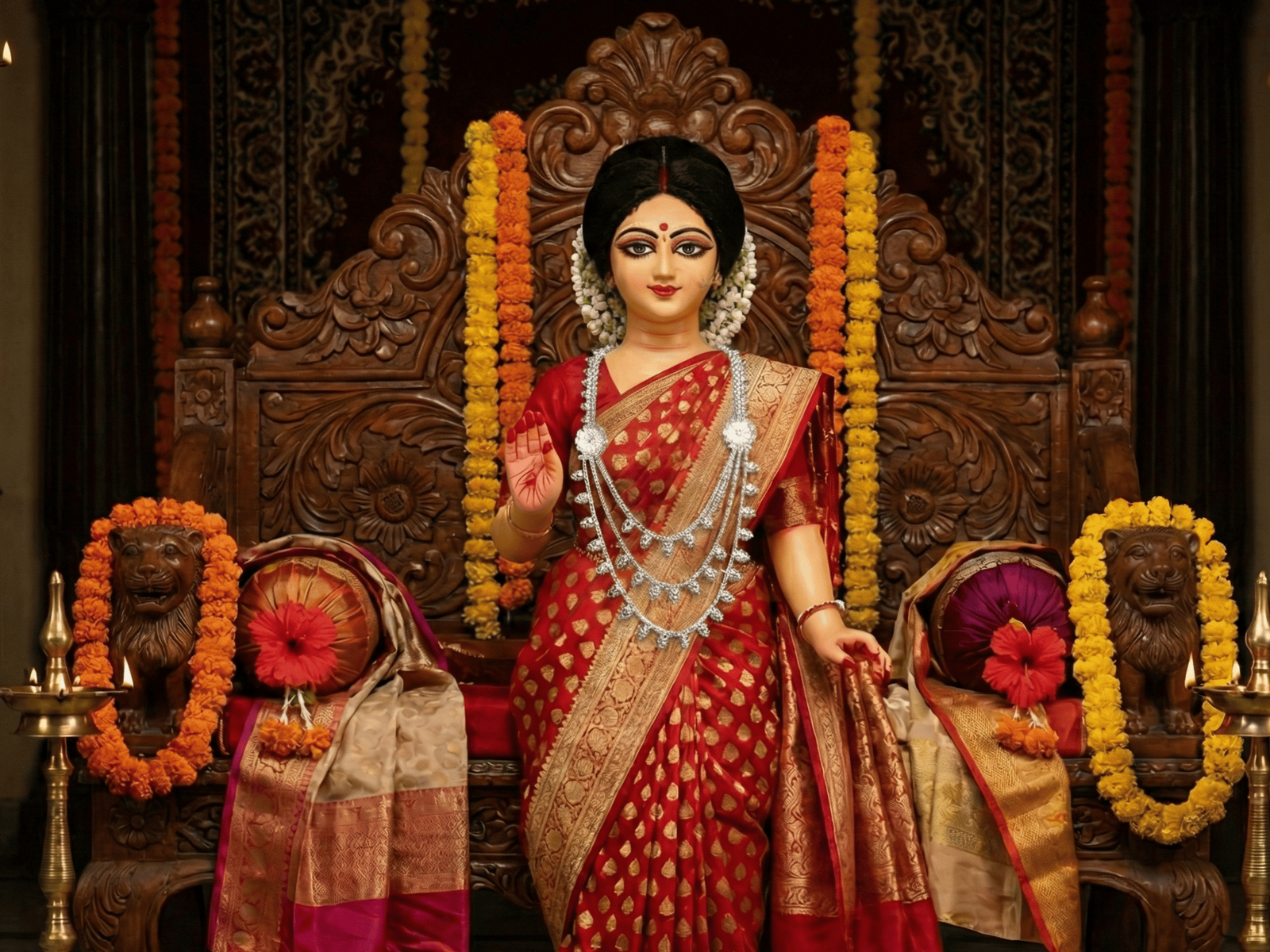 Made from high-quality silver, this necklace features five delicate layers of intricate design, symbolizing purity and devotion. Ideal for adorning idols during festivals, poojas, or daily rituals, it enhances the divine aura and makes your spiritual space more beautiful.