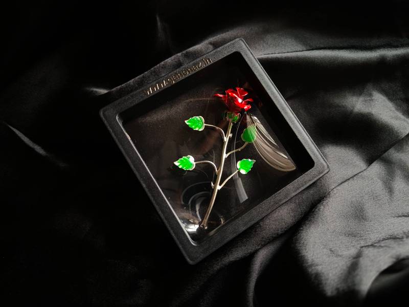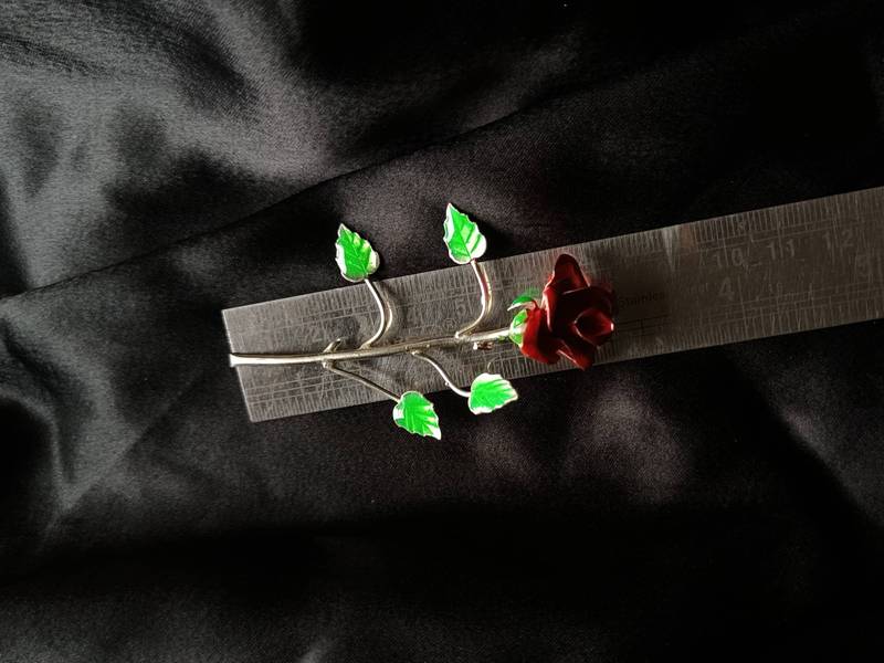 - The silver red rose is a stunning fusion of elegance and romance. Its stem and petals are sculpted from gleaming silver, while the bloom is accented with rich red enamel detailing, capturing the timeless beauty of a rose in everlasting form. Whether as a token of love, a decorative keepsake, or a collector’s piece, this silver rose speaks of passion preserved in precious metal—a graceful symbol of affection that never fades.