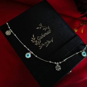 Delicately handcrafted, this silver evil eye anklet blends timeless elegance with protective charm. Featuring a sleek silver chain adorned with a striking evil eye motif, it’s a perfect fusion of mystique and minimalism. Whether layered with other anklets or worn alone, this piece adds a subtle shimmer and spiritual symbolism to every step you take.