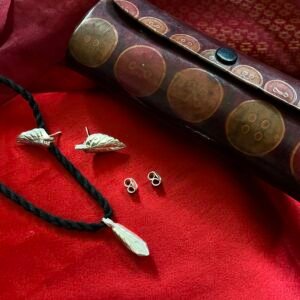 Gahenaz unique design is very uniquely made for you. Organic twisted silver leaf earrings and pendent set, textured, graceful artisan handmade stud earrings.