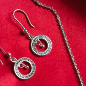 Udichi pendant set is bold and elegant and comes with a silver chain. The pendant set pairs well with any attire. It is unique and elegant.